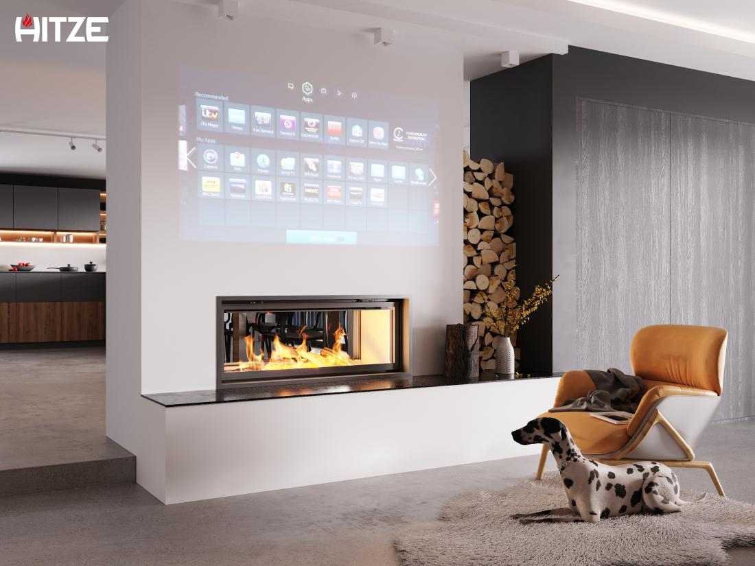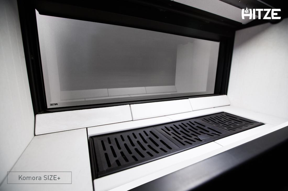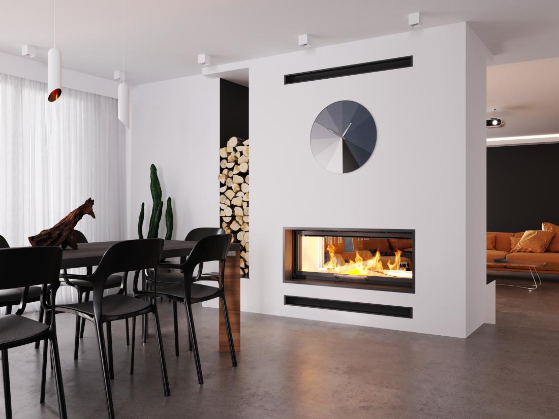 Eνεργειακό τζάκι αέρος με μεγάλο, βαθύ ορθογώνιο θάλαμο καύσης που δίνει τη δυνατότητα καύσης μεγάλων ξύλων.