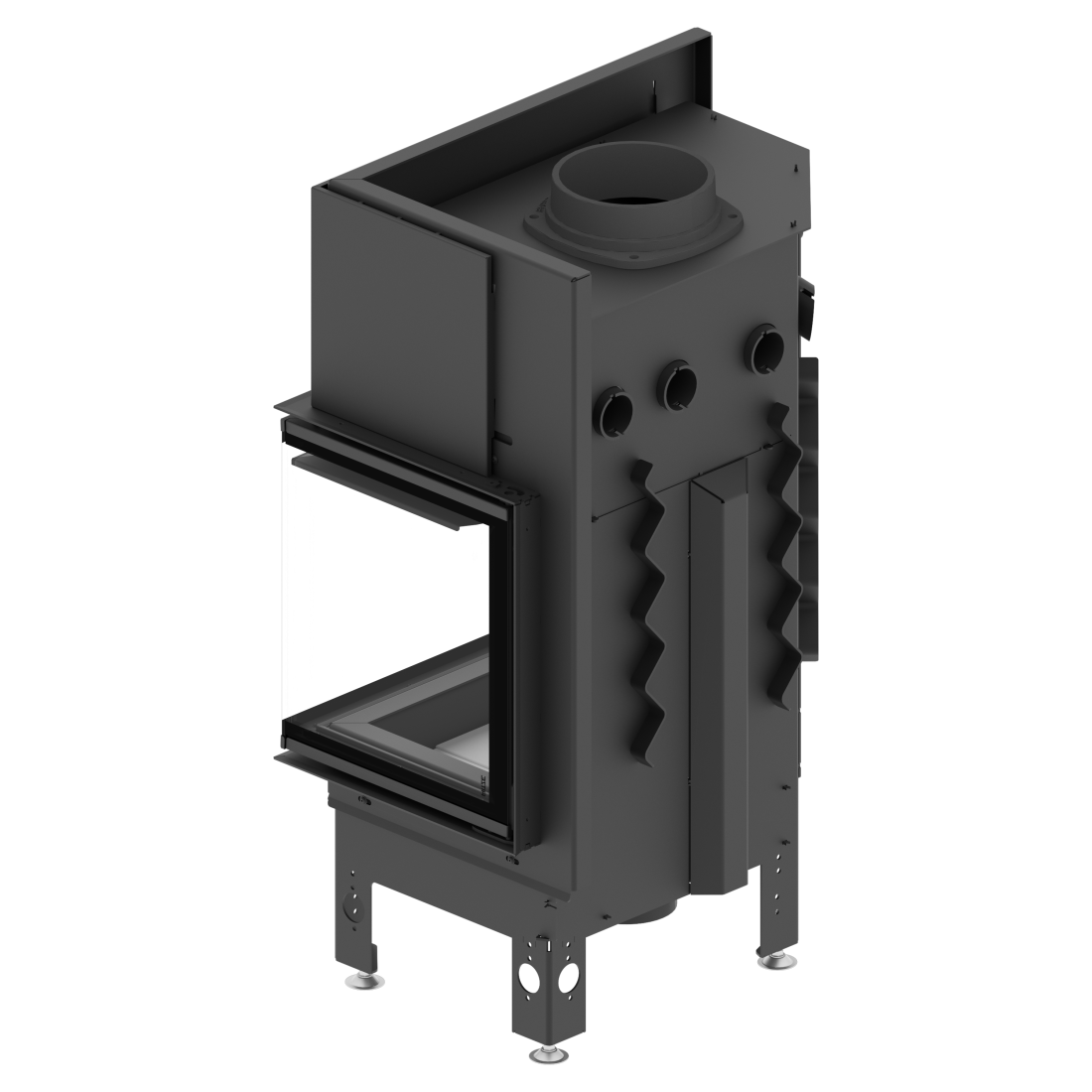 Ενεργειακό τζάκι αέρος 11 kW κατασκευασμένο από χάλυβα ποιότητας P265GH, εξοπλισμένο με ρυθμιζόμενη εισαγωγή αέρος πρωτογενούς και δευτερογενούς καύσης, ενεργειακής απόδοσης 84%.