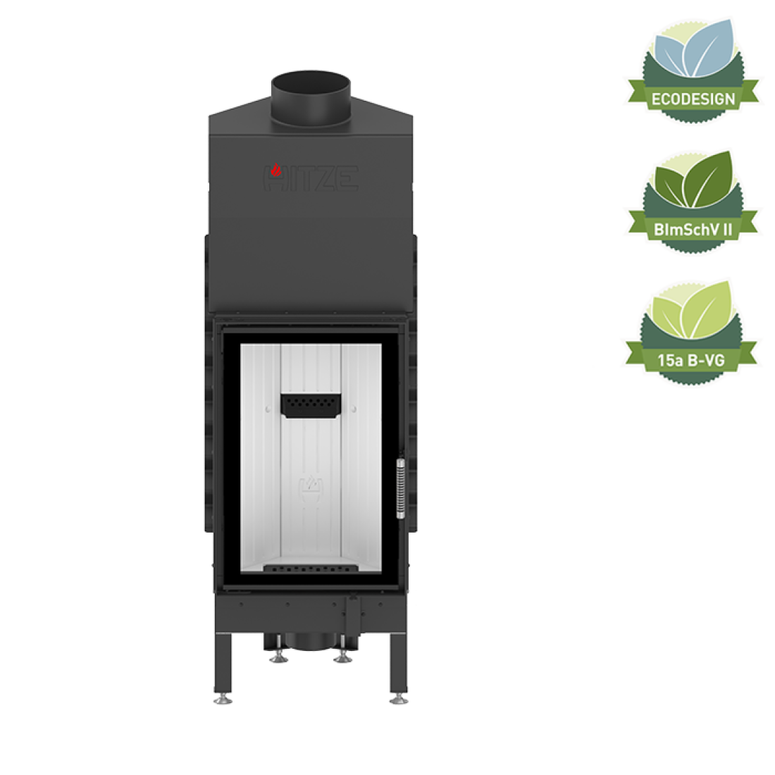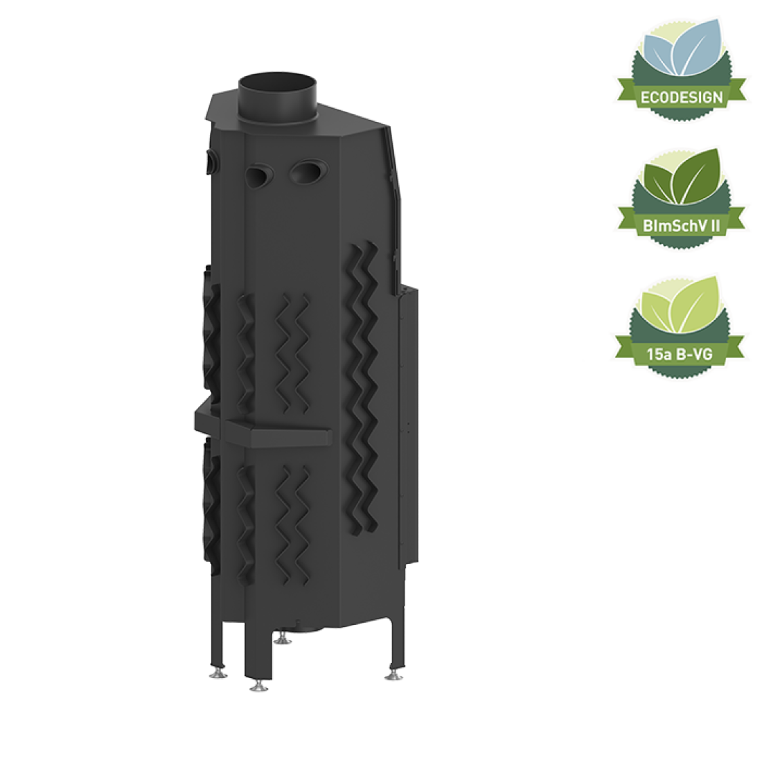 Ενεργειακό τζάκι αέρος 14 kW κατασκευασμένο από χάλυβα ποιότητας P265GH, πιστοποιημένο βάσει BImSchV-II, ECODESIGN και 15a B-VG. Eξοπλισμένο με ρυθμιζόμενη εισαγωγή αέρος πρωτογενούς και δευτερογενούς καύσης, υψηλής ενεργειακής απόδοσης.
