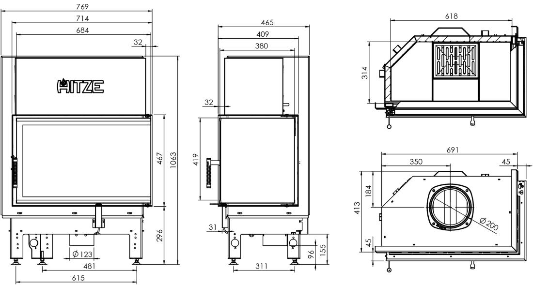 - Εξελιγμένο σύστημα εσωτερικών εναλλακτών - αυξάνει την ενεργειακή απόδοση του τζακιού