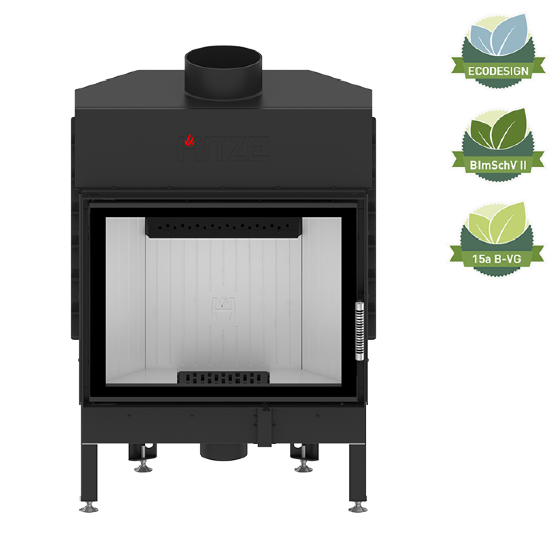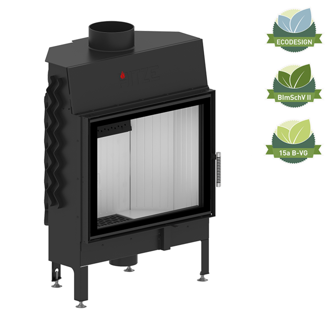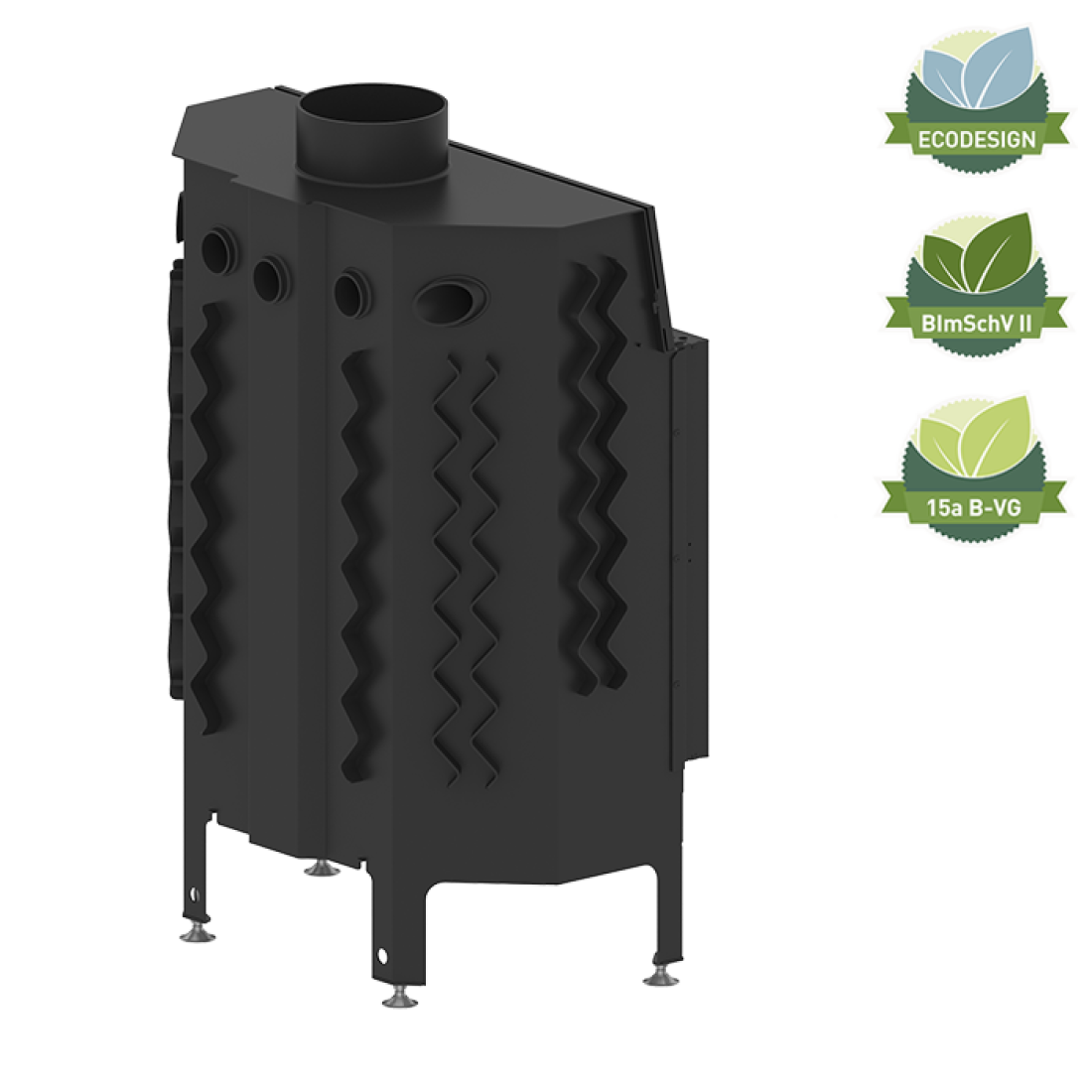 Ενεργειακό τζάκι αέρος ALBERO 16 kW κατασκευασμένο από χάλυβα ποιότητας P265GH, πιστοποιημένο βάσει BImSchV-II, ECODESIGN και 15a B-VG. Eξοπλισμένο με ρυθμιζόμενη εισαγωγή αέρος πρωτογενούς και δευτερογενούς καύσης, υψηλής ενεργειακής απόδοσης.