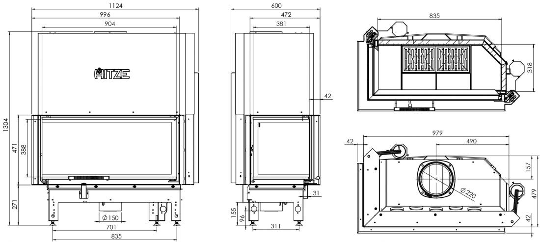 - Εξελιγμένο σύστημα εσωτερικών εναλλακτών - αυξάνει την ενεργειακή απόδοση του τζακιού