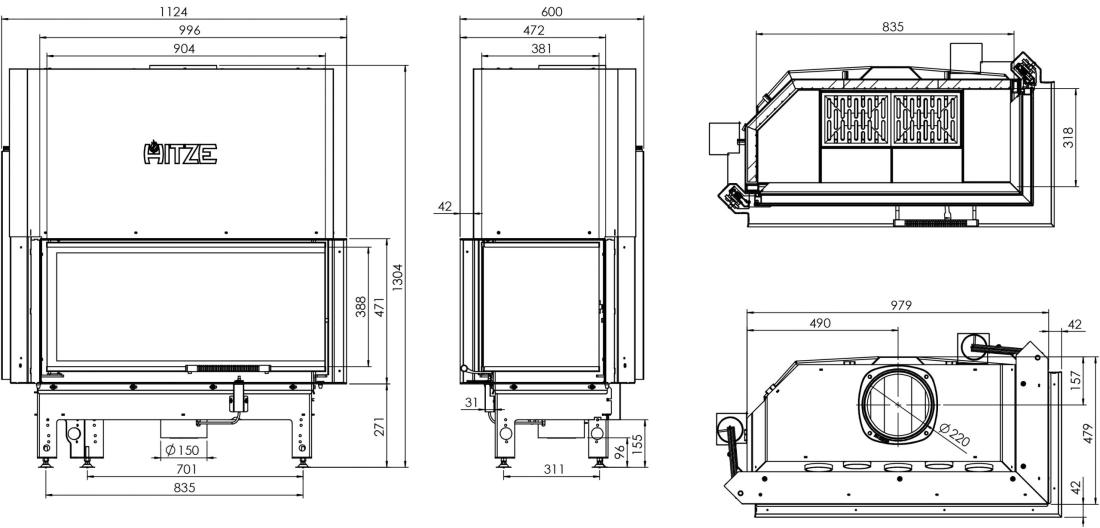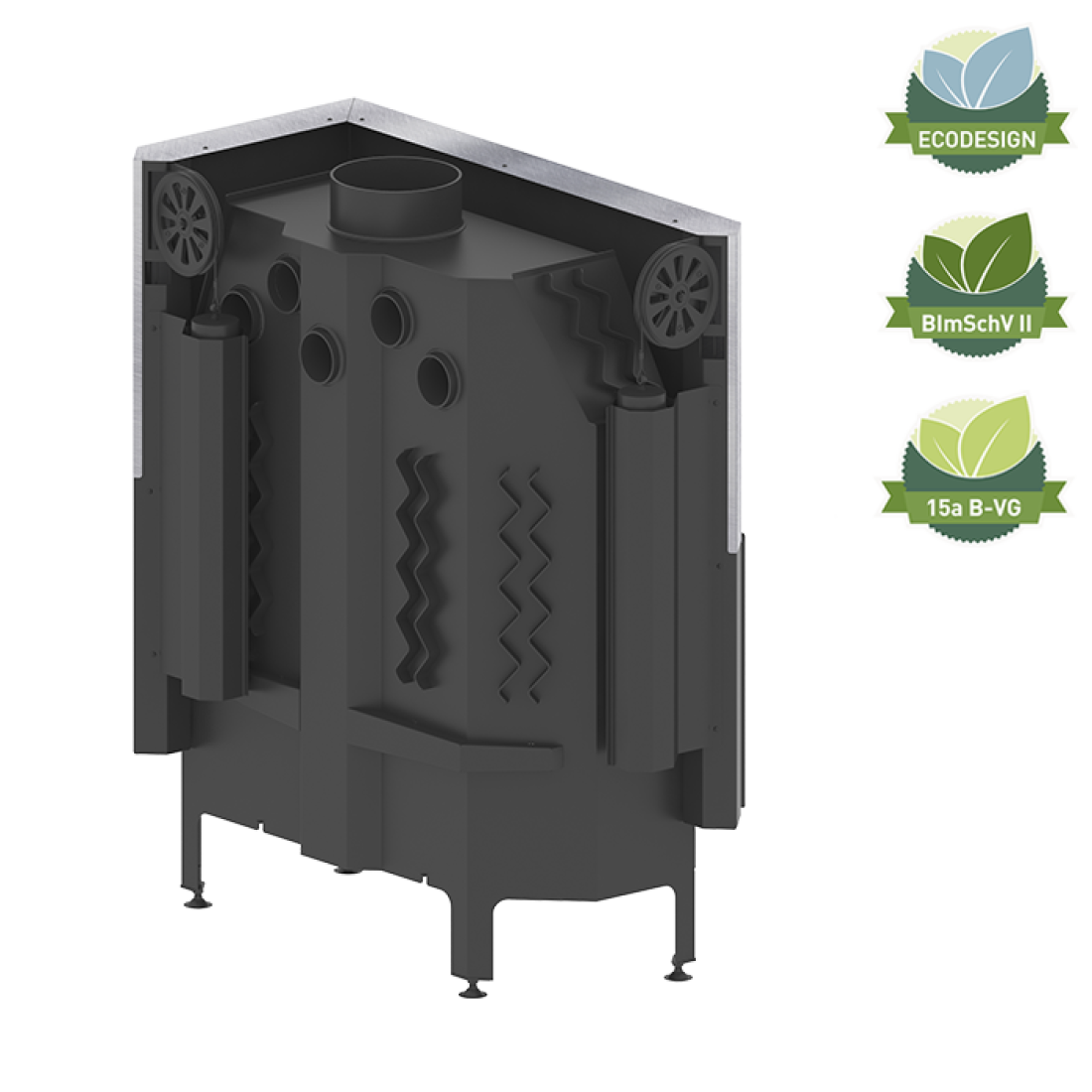 - Εξελιγμένο σύστημα εσωτερικών εναλλακτών - αυξάνει την ενεργειακή απόδοση του τζακιού