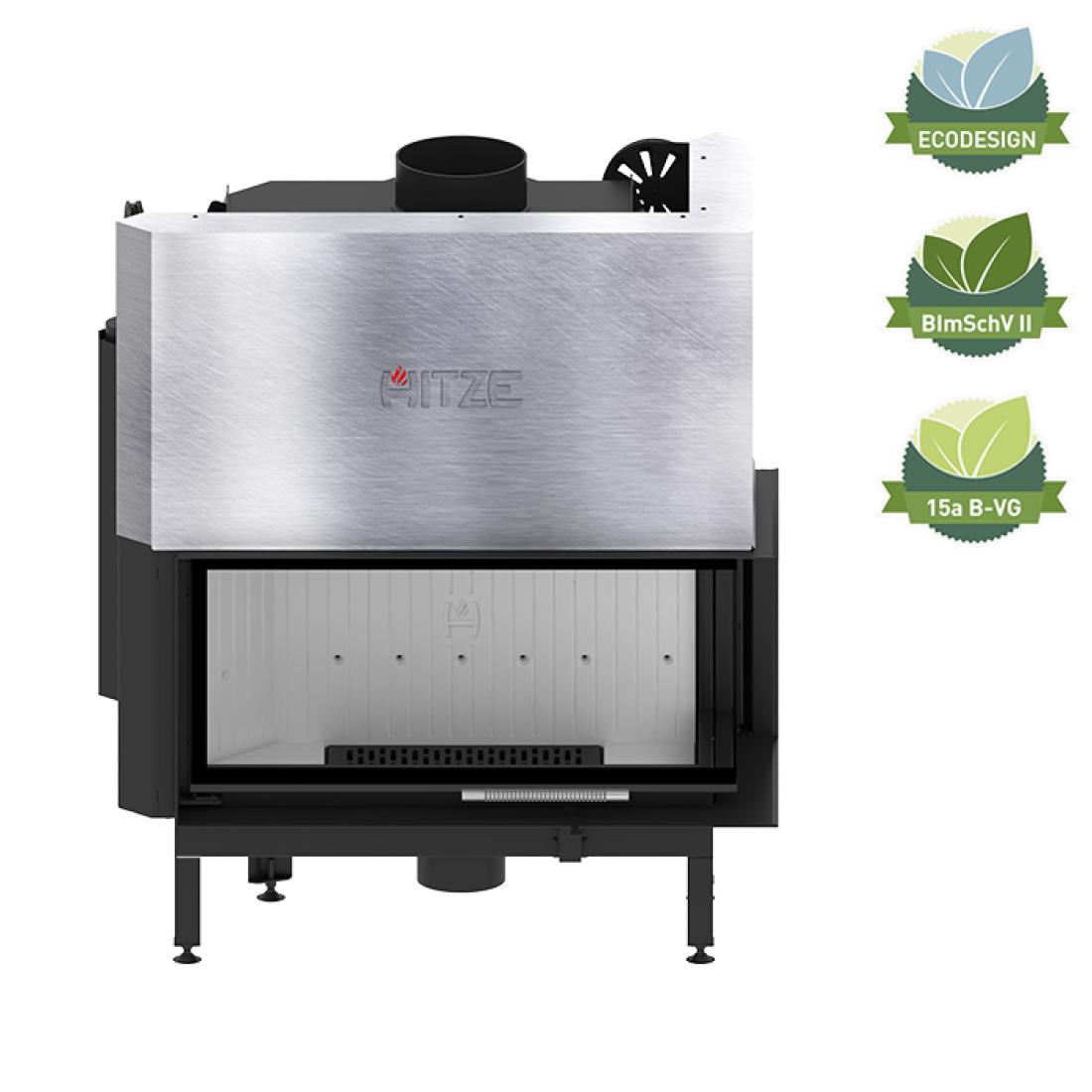 Ενεργειακό τζάκι αέρος ALBERO 19 kW κατασκευασμένο από χάλυβα ποιότητας P265GH, πιστοποιημένο βάσει BImSchV-II, ECODESIGN και 15a B-VG. Eξοπλισμένο με ρυθμιζόμενη εισαγωγή αέρος πρωτογενούς και δευτερογενούς καύσης, υψηλής ενεργειακής απόδοσης.